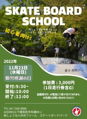 11月23日 スケートボードスクール生徒募集中