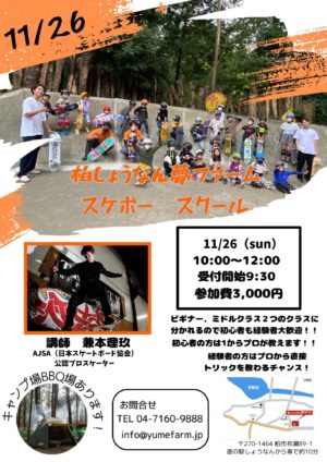 スケートボートパークも休まず営業しておりますので是非来てくださいね!