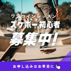 今回は本当に初心者の方や初めてスケボーを始めてみたい方が対象となりますのでご了承下さい。
